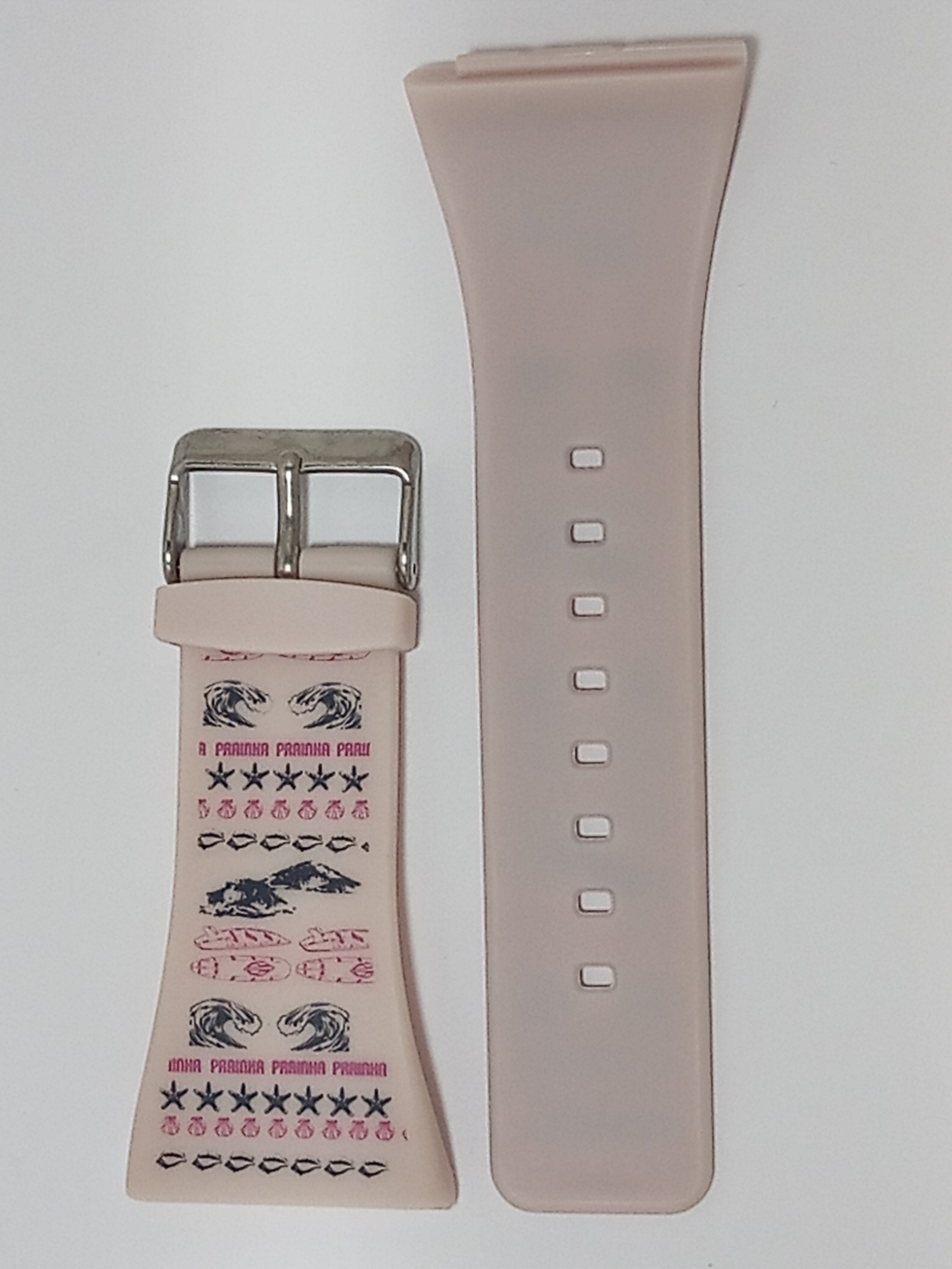 Pulseira de borracha para relógio Mormaii fz na cor rose bebê com estampa